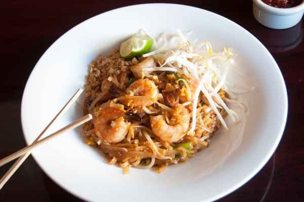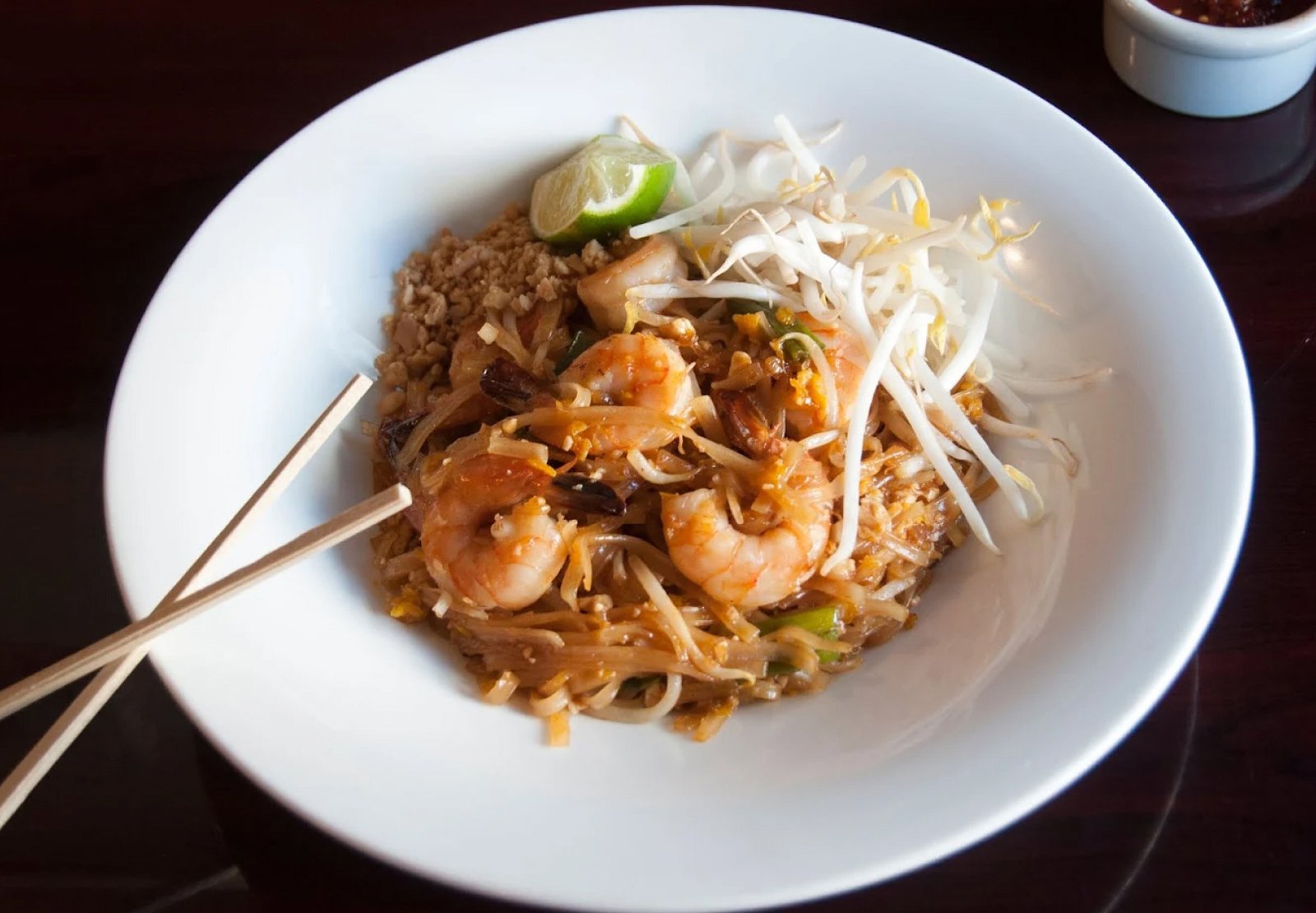 Thin rice noodles with peanuts, bean sprouts, scallions, and egg.